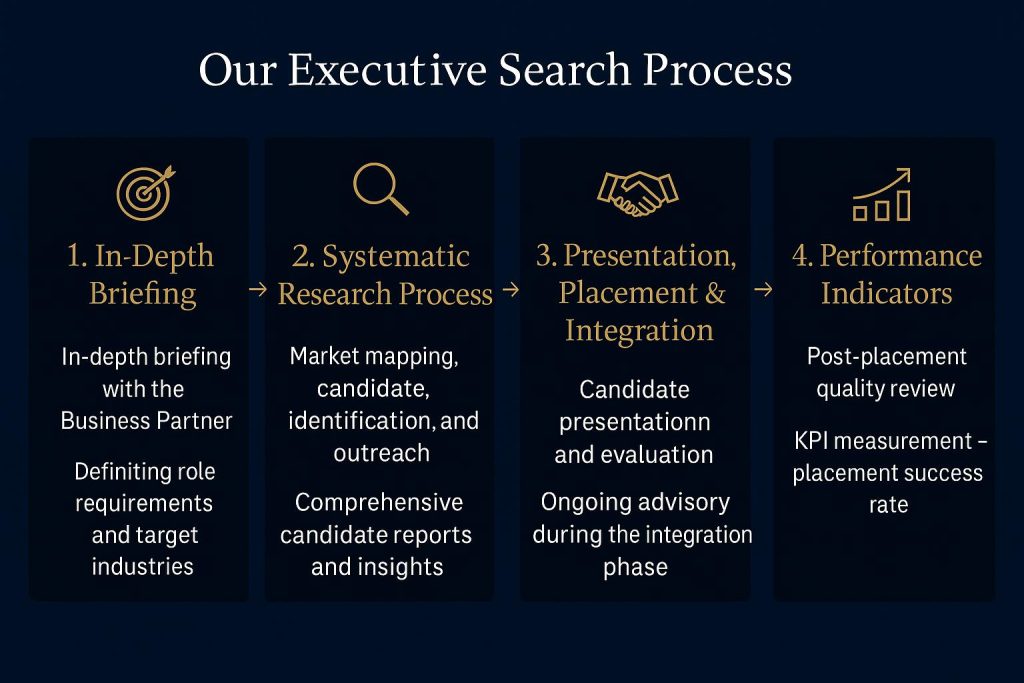 Designed with precision, this structured process ensures lasting leadership impact — beyond successful placements.